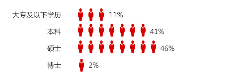 學(xué)歷結構 大專(zhuān)及以下學(xué)歷占1% 本科占33% 碩士占63% 博士占3% | ![]() |
